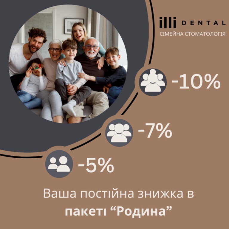 Ми впровадили сімейний формат обслуговування. Кожен пацієнт, який приводить у клініку родича, друга або знайомого, отримує постійну знижку: дві людини — 5%, три — 7%, чотири та більше — 10%.